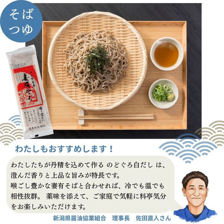 製造者 のどぐろ白だし、新潟県醤油協業組合 新潟県長岡市十日町1901-1 妻有そば、玉垣製麺所 新潟県十日町市子688-2